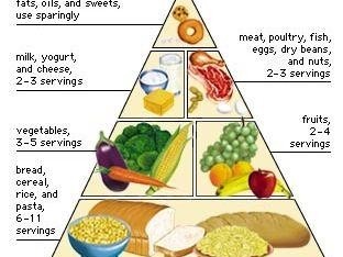 (1992年版美国膳食指南推出的“膳食金字塔”示意图)
