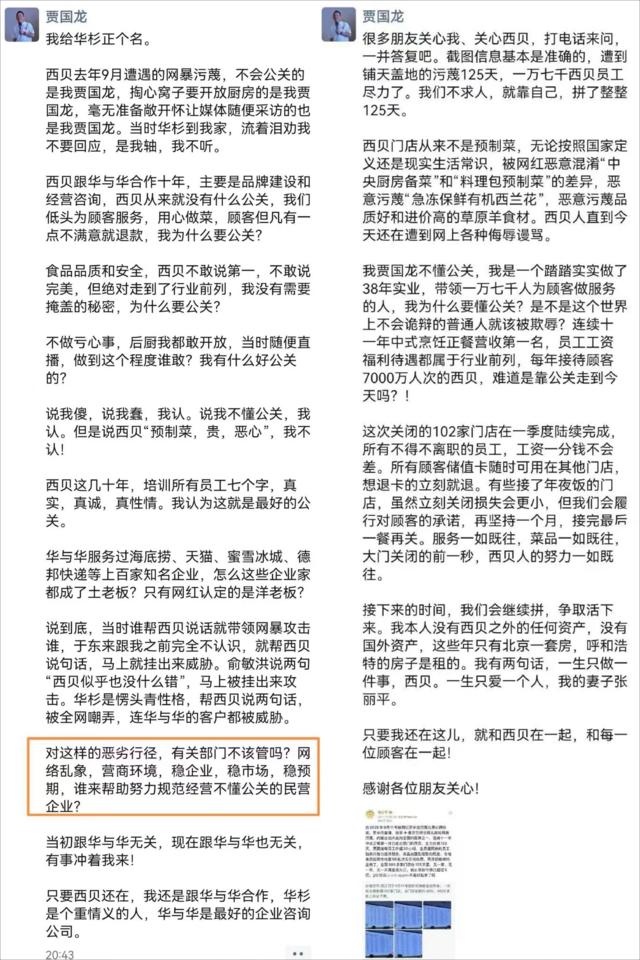 风波并未随着时间平息,反而因西贝的大规模关店计划再度升级。1月15日,网络流传“西贝将关闭102家门店”的消息,涉及全国30余个城市,约占其门店总数的30%。贾国龙随后在朋友圈确认该消息属实,坦言“遭到铺天盖地的污蔑125天,一万七千员工尽力了”,并承诺离职员工工资足额发放、顾客储值卡可跨店使用或退卡。