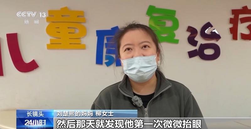 刘楚熙的妈妈 柳女士:跨年之后,他们班的小朋友给他发了一段分享音乐的视频、音频。楚熙听完以后,我们问他,小朋友给你分享的东西你喜不喜欢,喜欢的话你就睁一下眼睛。那天就发现他第一次微微抬眼,我们就想他应该是对那个声音起了反应,起了作用。所以我们就想着让他听到更多小朋友的声音。