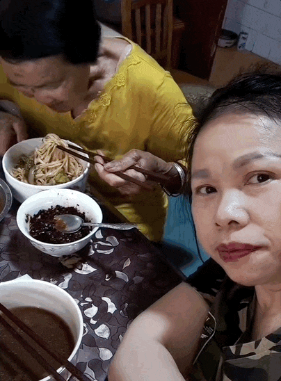 她写陪伴母亲吃面: