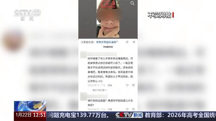 在公安机关全力追查叶某斌、欧阳某某失联轨迹,依法推进案件办理的关键阶段,网络上出现了关于两人失联的各类谣言,一个普通动作被解读引发大量猜测,“被转卖多个电诈园区”等不实信息层出不穷。这些不实信息不仅误导公众认知、煽动了舆论情绪,更干扰了警方的正常办案。总台央视记者独家采访了办案人员和当事人,还原事件真相。