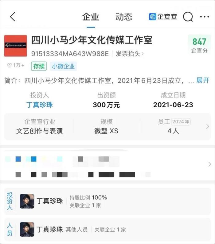 四川小马少年文化传媒工作室成立于2021年6月,出资额300万元人民币,经营范围包括营业性演出、演出经纪、广播电视节目制作经营等,为丁真珍珠(丁真)个人独资企。