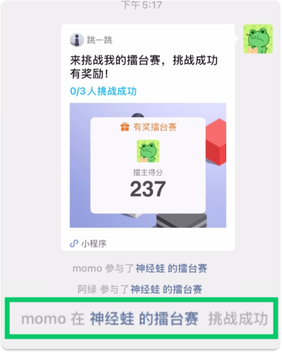 小游戏社交功能「擂台赛组件」上线,可帮助开发者打造社交裂变闭环,拉升活跃度。接入组件后,分享不再是一张静态卡片,而是一个动态的“战况看板”。同时,组件支持订阅消息通知,擂主可在游戏内订阅“被超越提醒”。同时,组件为开发者打包了从发起、挑战、结算到奖励领取的全套流程。