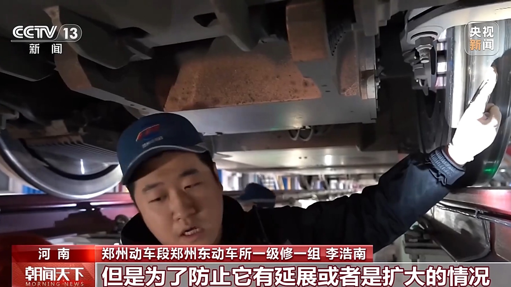 郑州动车段郑州东动车所一级修一组 李浩南:你看,这个硌伤虽小,但为了防止它有延展或者是扩大的情况,就在这里做一个标记,日后我们的同事每次检修到这里的时候,都会对它进行一个跟踪观察。
