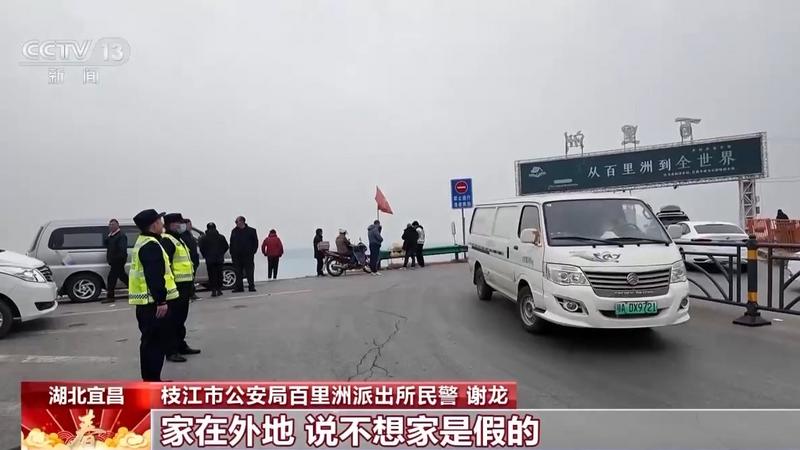 枝江市公安局百里洲派出所民警 谢龙:家在外地,说不想家是假的。这轮渡过来的每一辆车子安全回家,每一个平平安安的家庭,就是对我们工作最好的回馈,在这里过年也一样有温度。