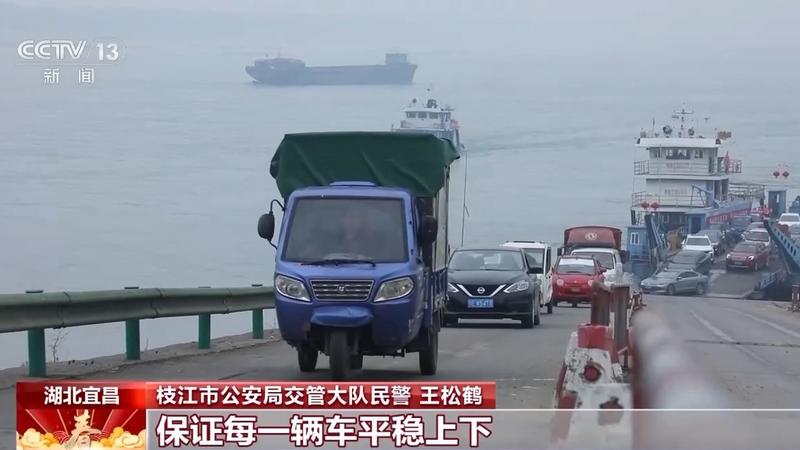 枝江市公安局交管大队民警 王松鹤:我们这个岗位有点像闸口,春运期间日均渡过长江的车辆大概有1000多台次,高峰期还得加班次。保证每一辆车平稳上下,每一位乘客安全过渡,我们心里才踏实。