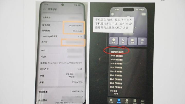2025年3月16日晚,小陈在广西陆川县体育馆散步时,丢失一部价值6000余元的华为手机。发现手机遗失后,她立即拨打自己的手机号,但连续拨打9次后手机被关机。随后,小陈迅速挂失,启动“丢失模式”锁定手机,并在锁定屏幕上留言,表示愿意支付2500元酬谢金寻回手机。