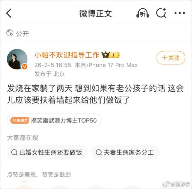 账号@小帕不欢迎指导工作 发布挑动性别对立、制造婚育焦虑信息,因违反相关法律法规和上述专项行动要求,被责令予以禁言处置,平台作为执行方执行禁言要求。也呼吁广大用户,在参与公共议题讨论时不刻意关联性别议题、不制造群体仇恨,不树立引战对立人设,保证自身创作安全的同时,维护清朗网络环境,让我们一起向性别对立说不。