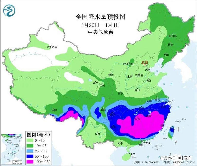 4月2日—4日,预计江南、华南北部以及贵州、四川盆地东部等地还有中到大雨,局部暴雨。
