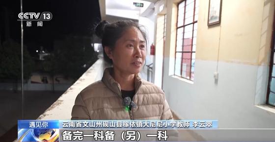 云南省文山州砚山县稼依镇大尼尼小学教师 李云翠:语文、数学都要教,备完一科备另一科。我已经当了35年乡村教师了,就是觉得是年纪上了,进度是没有那些年轻人快了,就觉得自己慢一点。