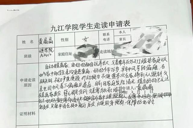 新学期开始不久,江西九江学院理学院就收到一份校外住宿申请。申请者大二学生黄晶晶并非本地学生,学院出于安全考虑展开核实,却揭开了一个令人动容的故事。