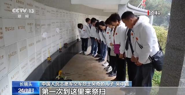 中国人民志愿军空军烈士吴奇的儿子 吴中直:2016年,陈绕天先生打电话给我,说在沈阳发现了一个陵园,这个陵园有你父亲的名字。当时我激动死了,我们家里组织了20个人左右,第一次到这里来祭扫。
