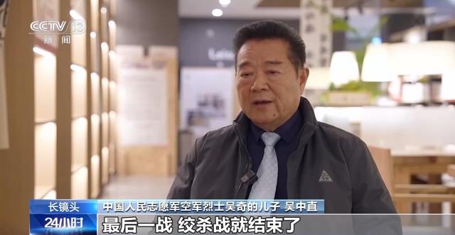 中国人民志愿军空军烈士吴奇的儿子 吴中直:10月16日这一天,最后一战,绞杀战就结束了。上午大家都是平安无事的,都返回机场了,下午又发现敌机就升空了。他自己当时是安全的,由于他一个战友受到了威胁,他就驾机驱散敌机,自己被其他的敌机包围了。中弹了,就没机会跳伞了,因为飞机的高度已经不够了,自己就昏迷了。
