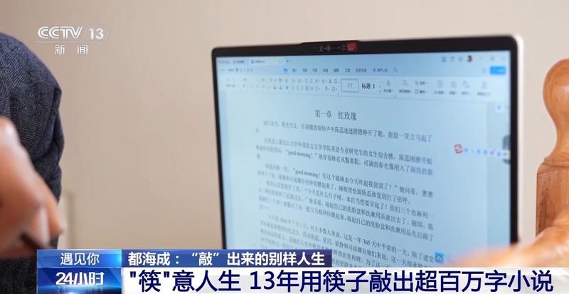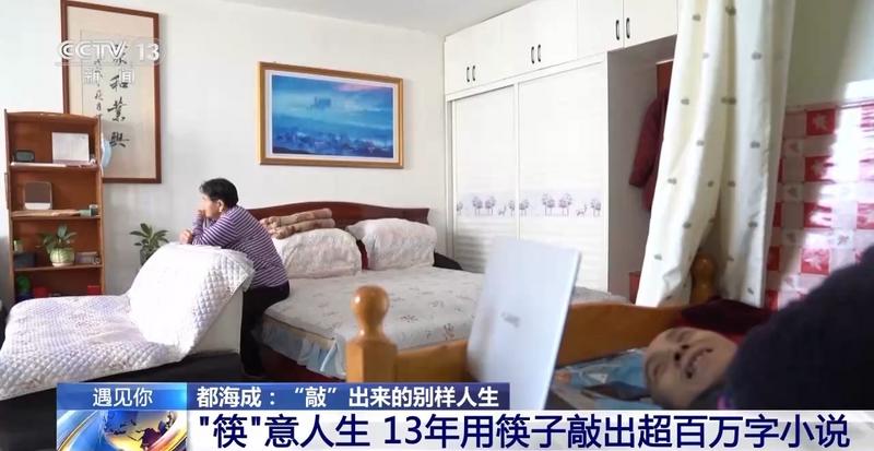自此都海成正式开始写作,他学着用筷子在电脑上敲字,13年来,他用筷子敲出了超百万字小说。