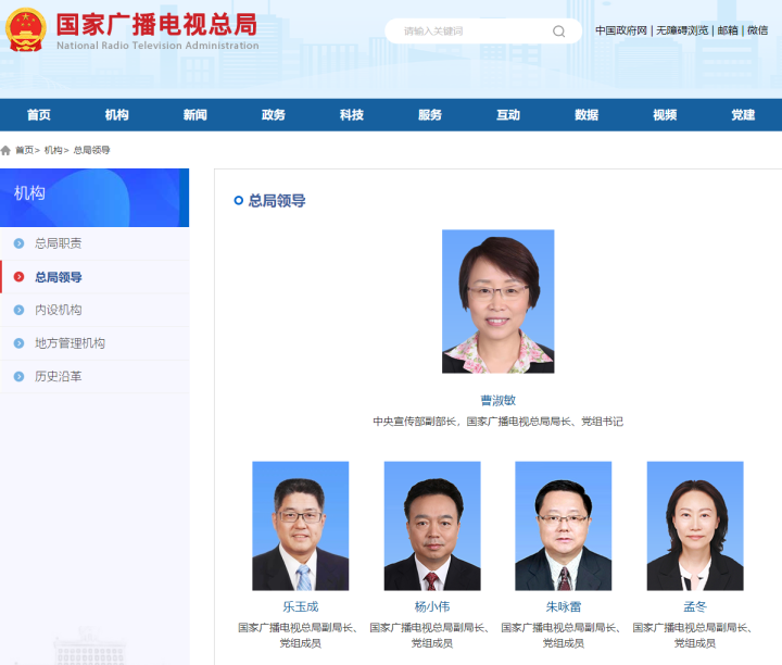 国家广播电视总局官网“总局领导”栏目显示,曹淑敏已任国家广播电视总局局长、党组书记。