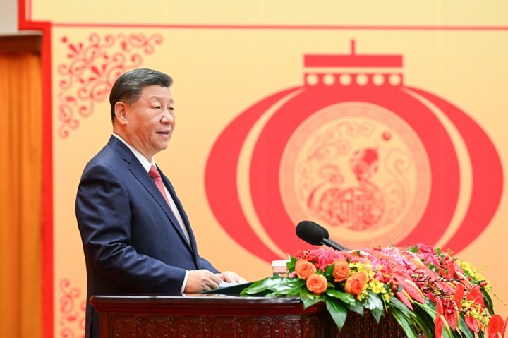 1月27日,中共中央、国务院在北京人民大会堂举行2025年春节团拜会。中共中央总书记、国家主席、中央军委主席习近平发表讲话。