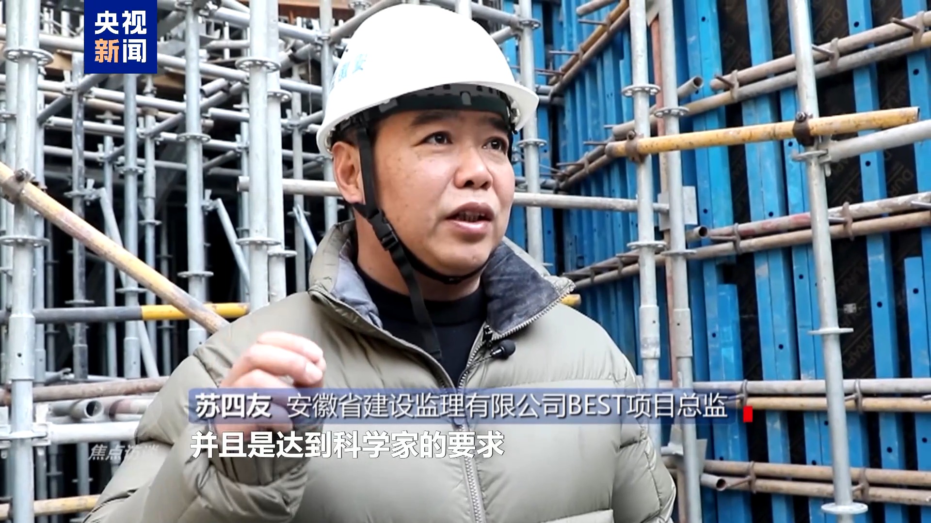 安徽省建设监理有限公司BEST项目总监 苏四友:到目前为止,整个进度略有超前,质量是完全可控的,完全在规范范围之内并且是达到科学家的要求。刚才讲的无磁钢柱,我们进行复测都是一次性合格。