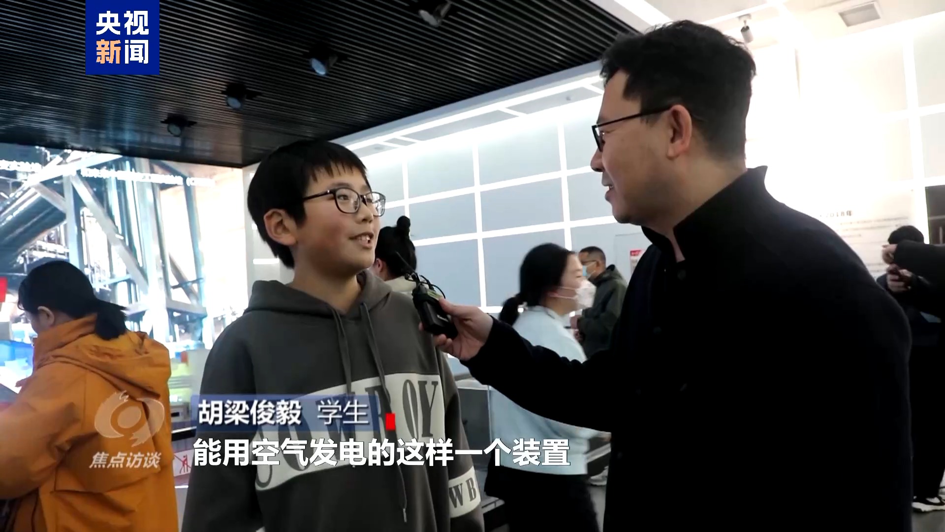 学生 胡梁俊毅:我想设计一个能用空气发电的装置。在未来能源可能将会耗尽的时代,可以无限续电,我感觉是非常伟大的。