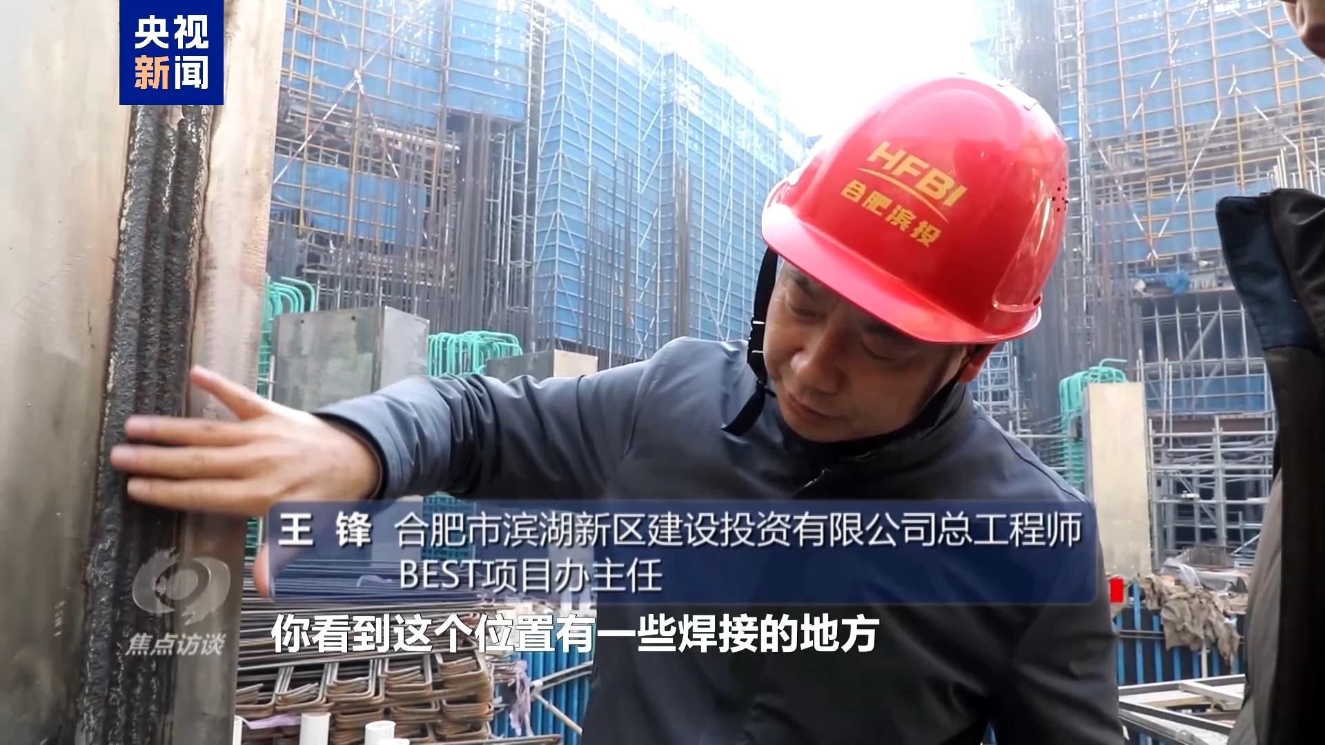 合肥市滨湖新区建设投资有限公司总工程师 BEST项目办主任 王锋:你看这个位置有一些焊接的地方,是在加工厂里面二次焊接的时候出现了问题。焊接的点位的磁导率不过关,这个科学问题解决不了,整个工程就要停工,所做的所有的东西就是围绕这个来干的。