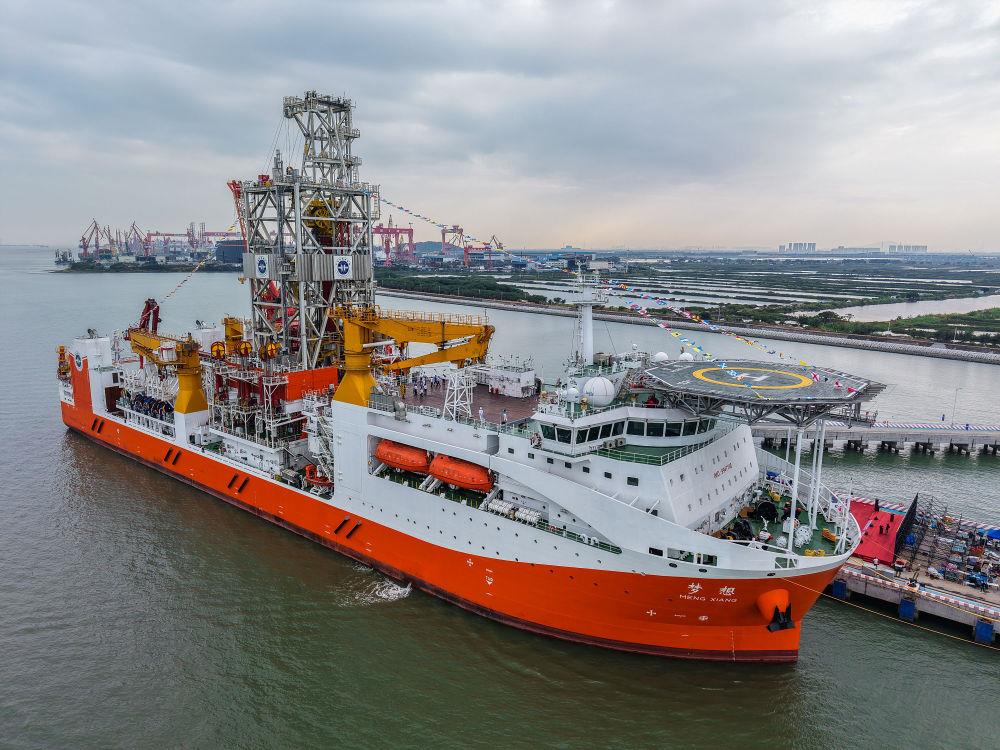 △2024年11月17日,靠泊在广州海洋地质调查局科考码头的我国自主设计建造的首艘大洋钻探船梦想号。