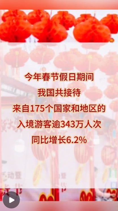 首个“非遗版”春节,普天同庆,五洲同春。“来华体验中国年”,是其中一道动人的风景。中国的高铁上、景区里,时常可见外国游客的身影。数据显示,今年春节假日期间,我国共接待来自175个国家和地区的入境游客逾343万人次,同比增长6.2%。