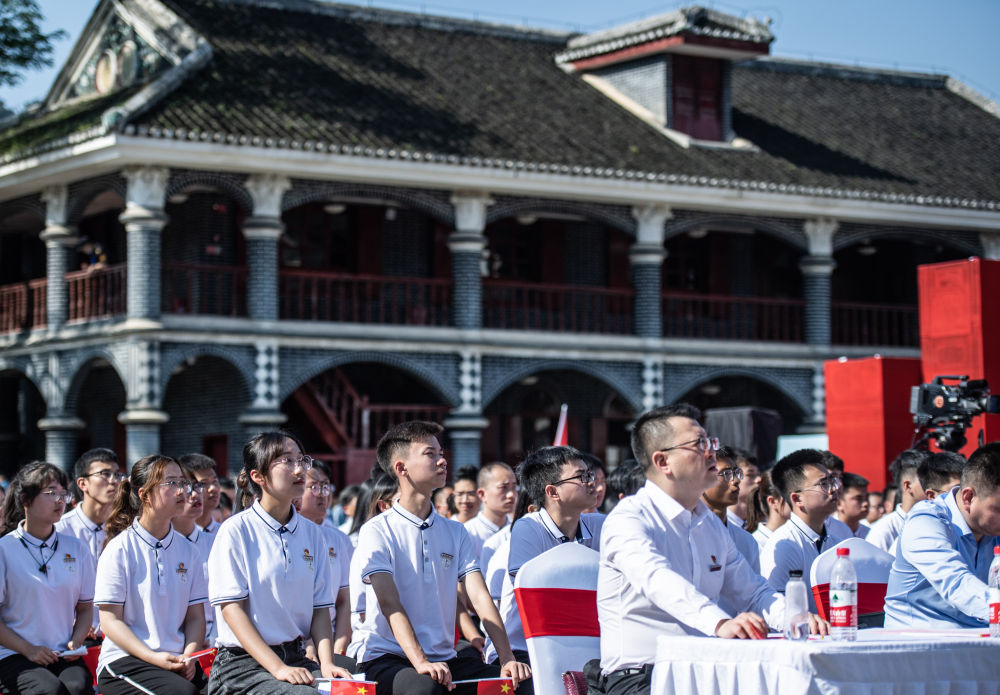 2021年5月14日,在贵州省遵义市遵义会议纪念馆广场,贵州医科大学师生代表参加“赓续百年红色基因,传承守护健康血脉”——“四地同上一堂党史课”活动。