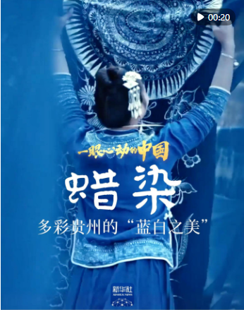 蜡染是用蜡刀蘸熔蜡绘图案于布后以蓝靛浸染