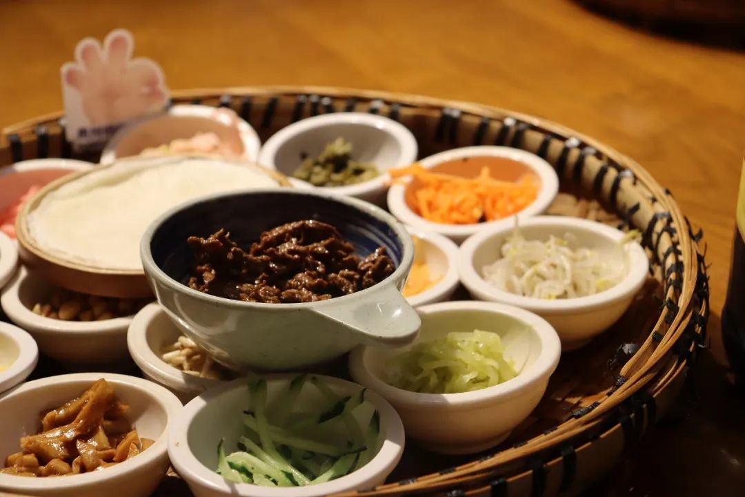 薄饼卷入萝卜丝、折耳根