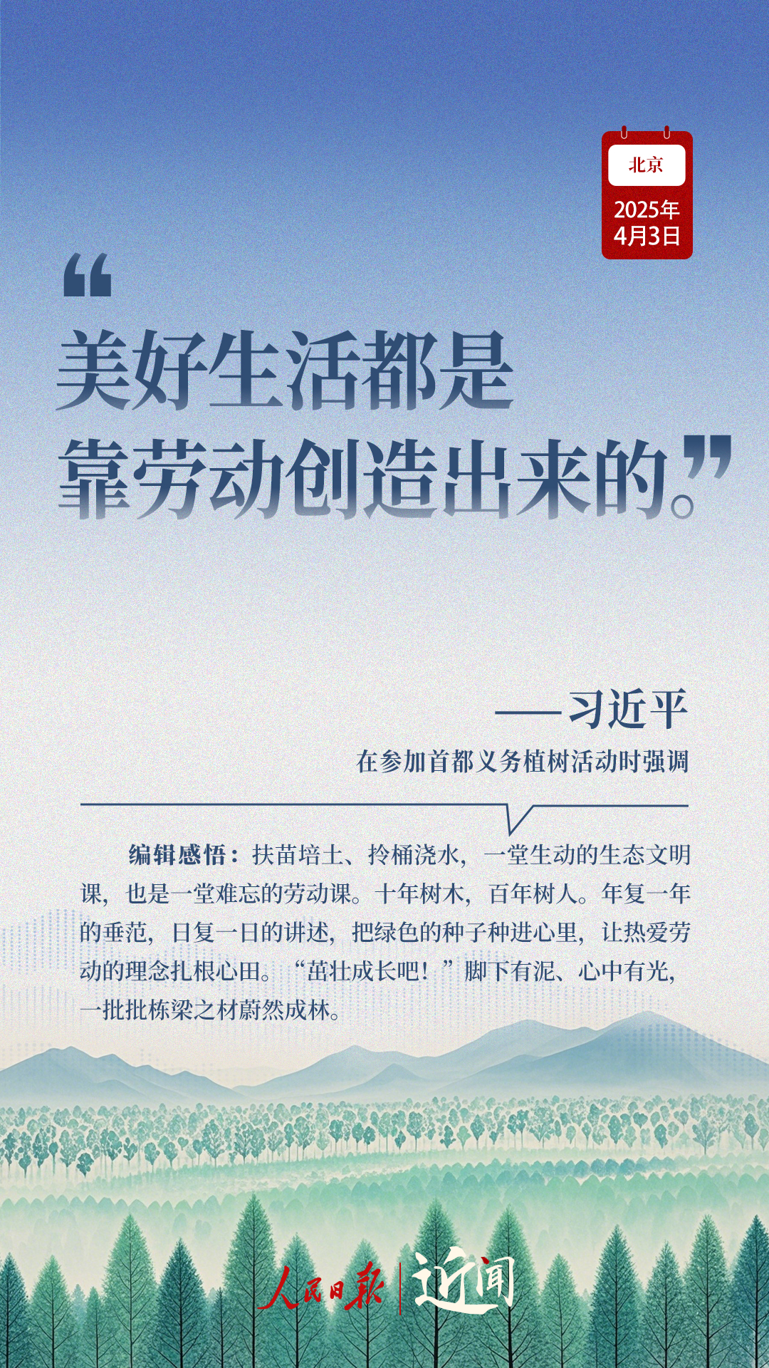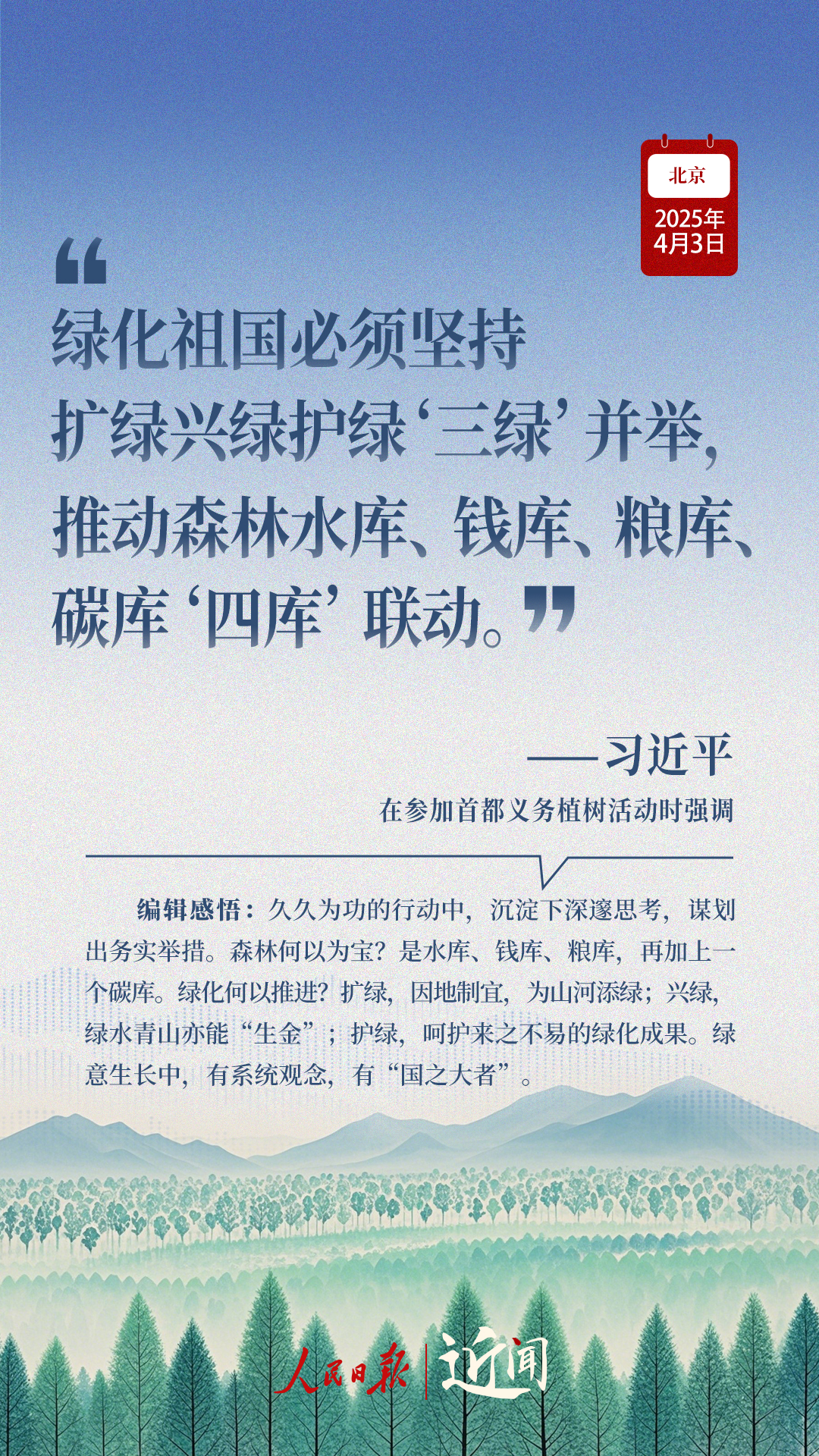 “生态环境持续改善,人民群众感受最直接最真切。”“义务植树是全民行动,要一代接着一代干下去。”在植树现场,从这些话语读懂一份坚持、一种情怀。