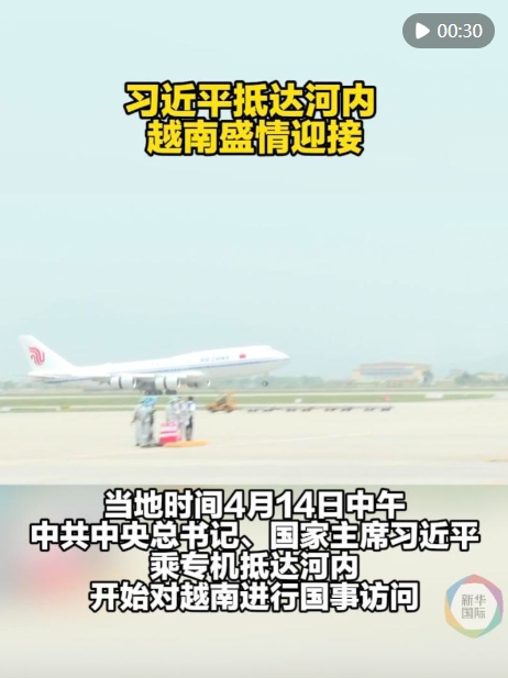 当地时间4月14日中午,中共中央总书记、国家主席习近平乘专机抵达河内,开始对越南进行国事访问。