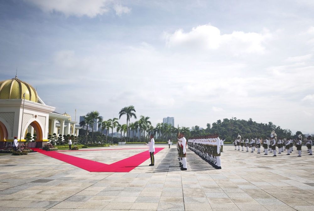 新华社讯 当地时间4月16日,国家主席习近平出席马来西亚最高元首易卜拉欣举行的欢迎仪式。