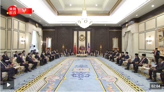 央视新闻讯 4月16日上午,马来西亚最高元首易卜拉欣在马来西亚国家王宫同中国国家主席习近平举行会见。