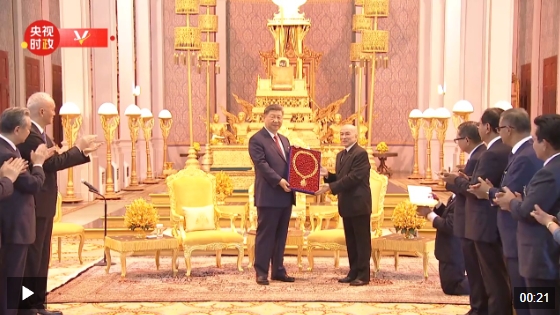 △独家视频丨习近平接受“柬埔寨王国民族独立大项链级勋章”