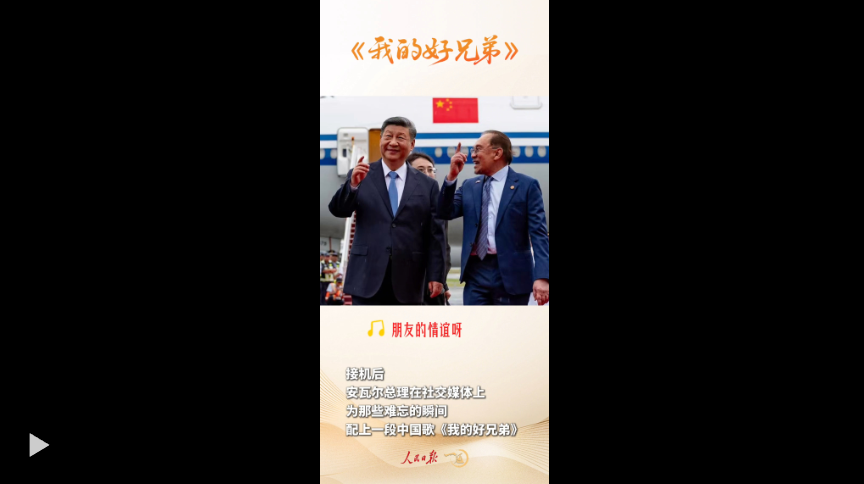 接机后,安瓦尔总理在社交媒体上为那些难忘瞬间配上一段中国歌——《我的好兄弟》。
