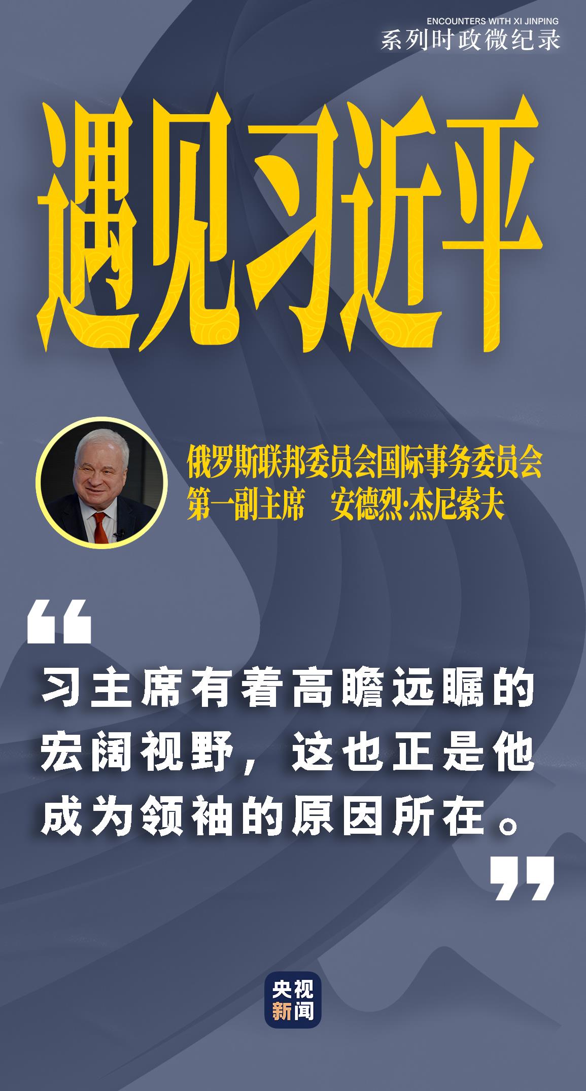 安德烈•杰尼索夫,俄罗斯联邦委员会国际事务委员会第一副主席,2013年至2022年曾任俄罗斯驻华大使。在他看来,“中国制定了到2035年和2049年远景目标,世界上没有其他国家制定如此长远的发展规划,习主席有着高瞻远瞩的宏阔视野,这也正是他成为领袖的原因所在。”