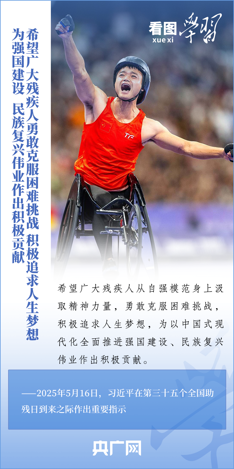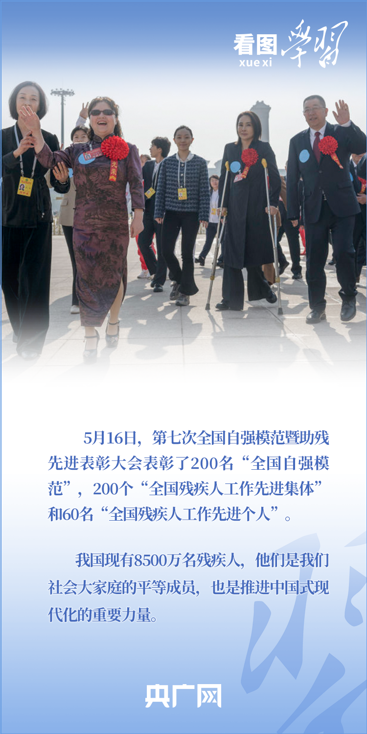 “残疾人是推进中国式现代化的重要力量,也是需要格外关心、格外关注的特殊困难群体。”5月16日,第七次全国自强模范暨助残先进表彰大会在京召开。习近平总书记作出重要指示,代表党中央,向受表彰的全国自强模范和残疾人工作先进集体、先进个人表示祝贺,向全国广大残疾人及其亲属、残疾人工作者致以问候。
