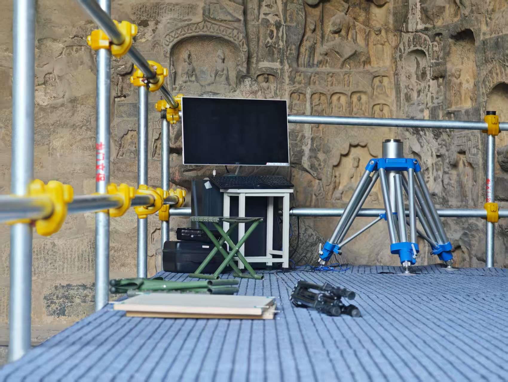 △龙门石窟内的考古研究现场。(总台央广记者潘毅拍摄)