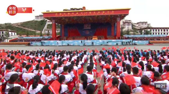 8月21日上午,西藏自治区成立60周年庆祝大会在拉萨隆重举行。