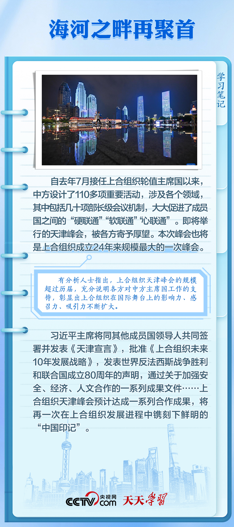 8月31日至9月1日,2025年上海合作组织峰会将在天津举行。习近平主席将同20多位外国领导人和10位国际组织负责人聚首海河之滨,出席上合组织成立以来规模最大的一次峰会。