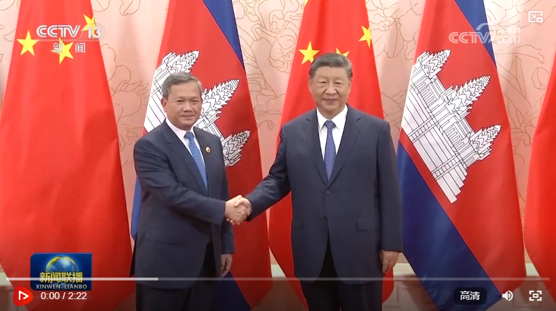 8月30日下午,国家主席习近平在天津迎宾馆会见来华出席2025年上海合作组织峰会的柬埔寨首相洪玛奈。