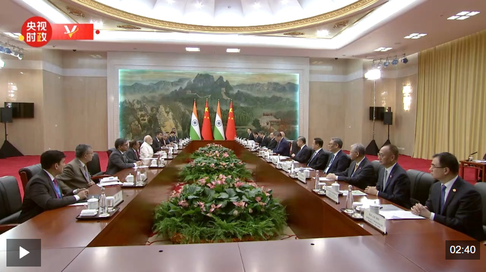 习近平强调,今年是中印建交75周年。双方要从战略高度和长远角度看待和处理中印关系,通过天津会晤再提升,推动两国关系持续健康稳定发展。要共同展现历史担当,坚持多边主义,加强在重大国际和地区问题上的沟通和协作,捍卫国际公平正义,携手推动世界多极化和国际关系民主化,为维护亚洲乃至世界和平和繁荣作出应有贡献。