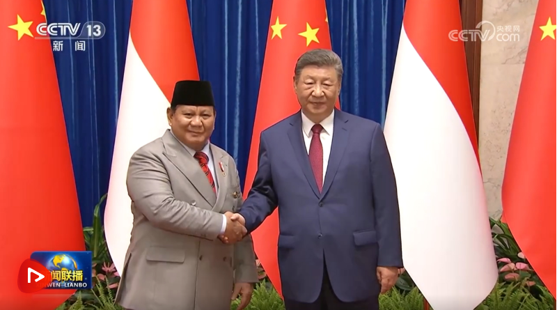 习近平指出,总统先生克服困难来华出席纪念活动,体现了对中印尼关系的重视和印尼人民对中国人民的真挚友好情谊。中方支持总统先生施政,支持印尼尽快恢复秩序和稳定,支持印尼发展壮大。今年是中印尼建交75周年,也是印尼独立80周年和万隆会议召开70周年。无论国际形势如何变化,中印尼始终传承独立自主的民族精神,坚持合作共赢的相处之道,展现和平发展的大国担当。中方愿同印尼秉持建交初心,弘扬和平共处五项原则和万隆精神,高水平推进中印尼命运共同体建设,为人类进步事业作出应有贡献。