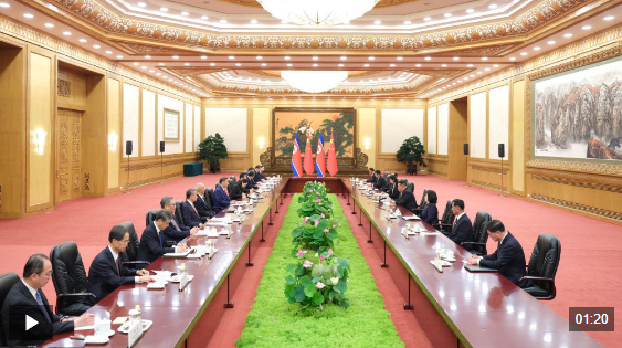 9月4日晚,中共中央总书记、国家主席习近平在北京人民大会堂同来华出席纪念中国人民抗日战争暨世界反法西斯战争胜利80周年活动的朝鲜劳动党总书记、国务委员长金正恩举行会谈。