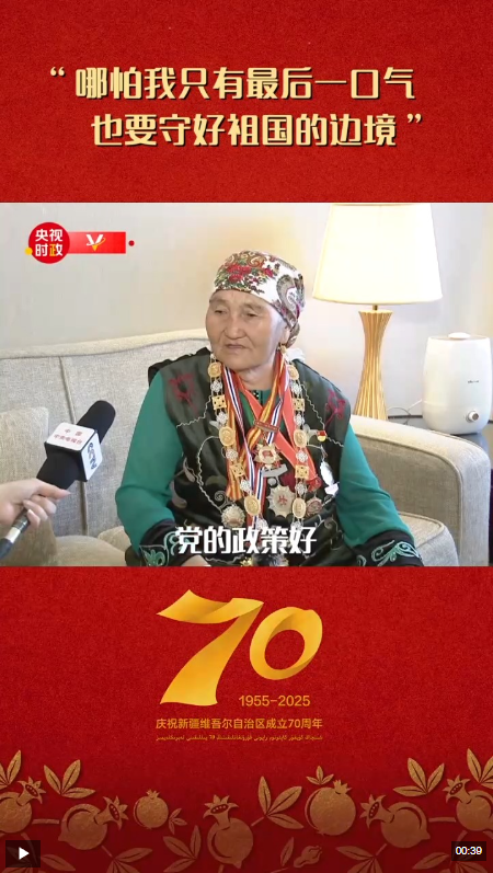 “人民楷模”国家荣誉称号获得者布茹玛汗·毛勒朵表达了她最想对总书记说的话:“我从19岁开始守边护边,哪怕我只有最后一口气,也要守好祖国的边境。”