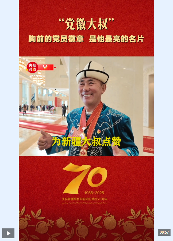 总台记者在现场见到了来参会的新疆克州阿克陶县木吉乡的先进模范阿布都加帕尔·猛德。几年前,阿布都加帕尔·猛德因一段视频而备受关注。视频中他帮助陷入泥潭的游客车辆脱困,游客提出给钱作为报酬,他谢绝了,并亮出胸前的党员徽章。他也因此被网友称为“党徽大叔”。