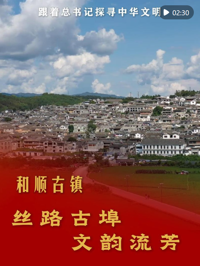 2020年1月19日,习近平总书记来到云南腾冲和顺古镇考察调研。和顺是古代川、滇、缅、印南方陆上“丝绸之路”的必经之地,保存了比较完整的明清古建筑群。考察中,习近平总书记走进和顺图书馆,了解古镇历史文化传承和振兴文化教育情况。