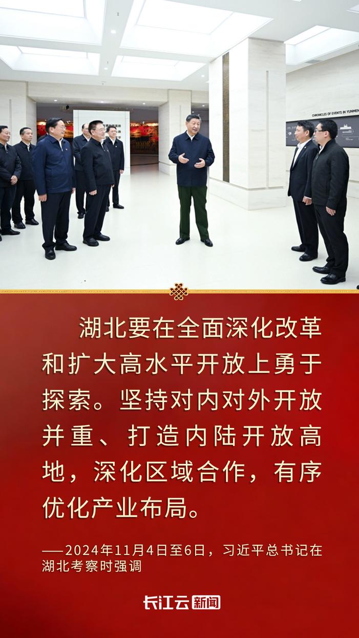 这份憧憬,源自“加快建成中部地区崛起的重要战略支点”的宏伟蓝图。2024年11月,习近平总书记第六次亲临湖北考察,为湖北指明了在全国大局中的战略方位,擘画了新时代湖北发展的新蓝图。