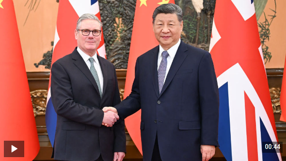 央视新闻讯 1月29日上午,国家主席习近平在北京人民大会堂会见来华进行正式访问的英国首相斯塔默。