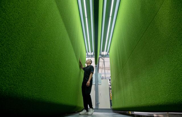 走进位于乐陵的泰山体育产业集团的企业博物馆,会降温的环保草坪、能健身的智能公交站、搭载黑科技的碳纤维体操鞍马、斩获德国iF设计奖的竞技自行车……一项项“黑科技”让人目不暇接。