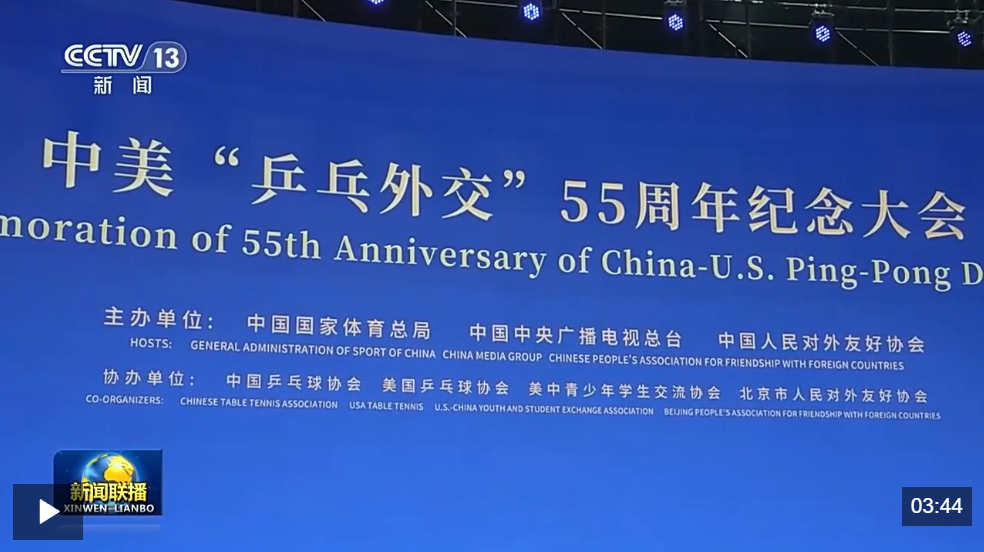 中国人民对外友好协会副会长 沈昕:总书记在贺信中强调了“乒乓外交”的现实和历史意义,特别鼓励两国的青年一代他们要相知相亲、携手同行,这对中美两国的民间交往是一个巨大的推动,也注入了温暖的能量。